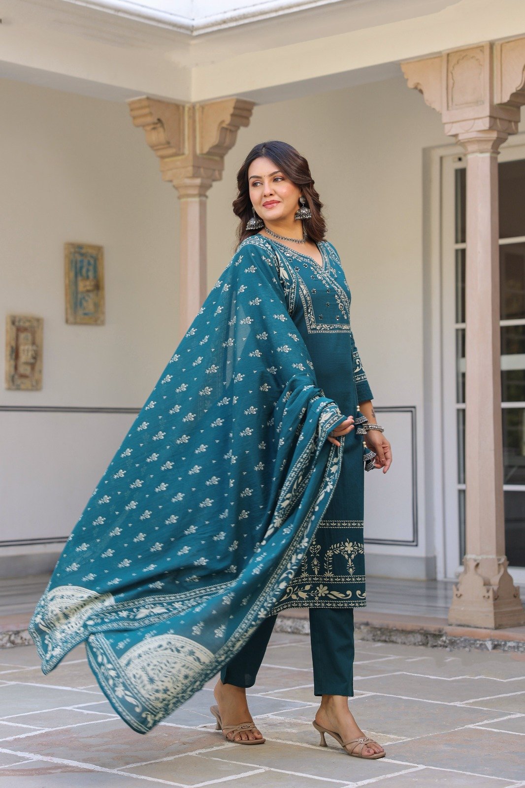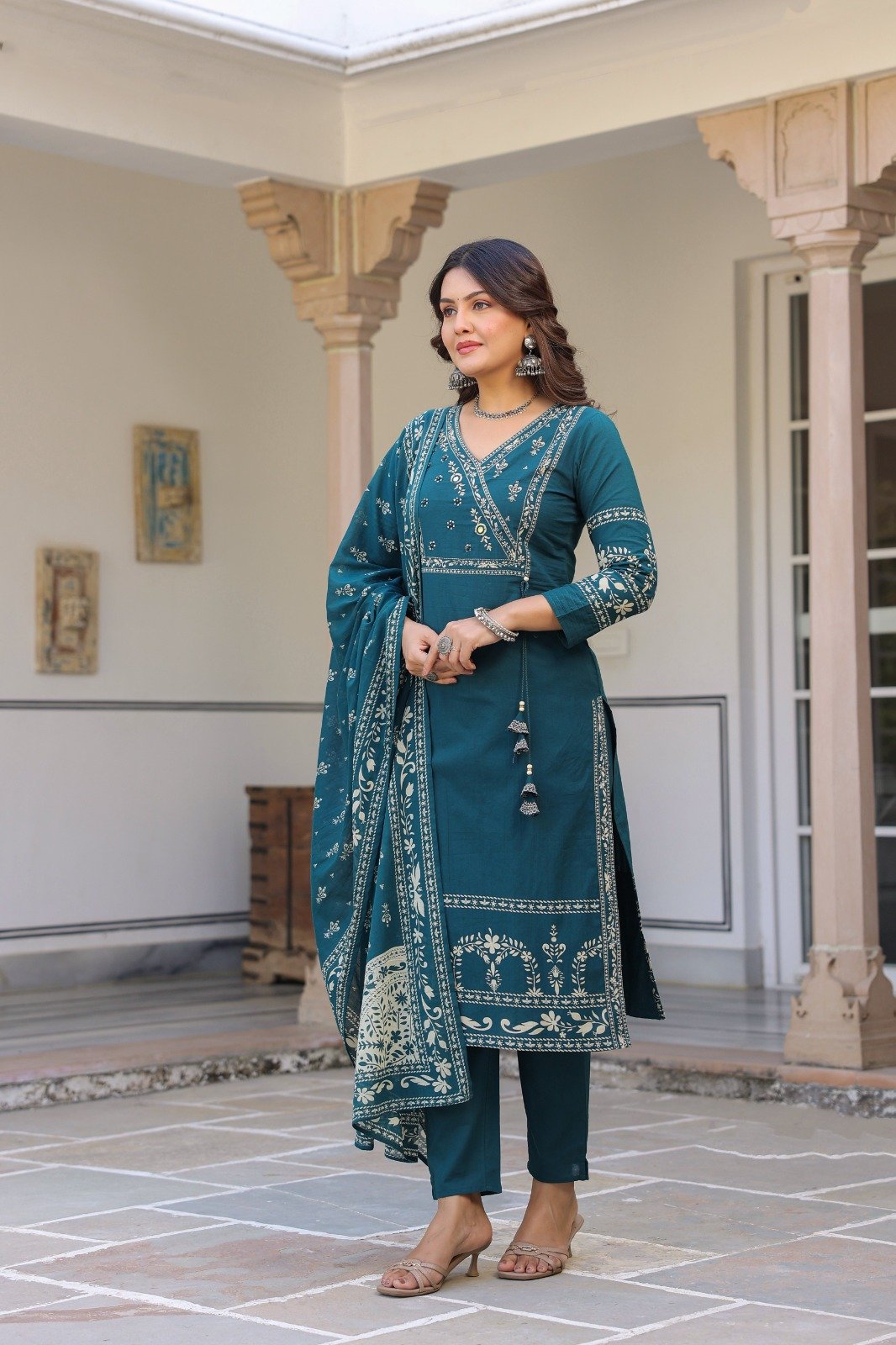Upgrade your everyday ethnic style with this comfortable and elegant pure cotton suit set. Crafted from soft, breathable cotton, it ensures all-day comfort while keeping your look effortlessly stylish.